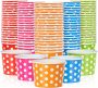 Elevate Your Dessert Presentation - Our stylish Disposable Dessert Bowls with their exuberant color palette not only enhance the visual appeal of your sweets but are also crafted for strength and durability, making them the ideal choice for both private delights and social gatherings Safe & Practical - Made from quality durable cardboard, our disposable ice cream bowls are designed for easy, hassle-free clean-up, saving time and water; serving your treats in our paper cups means you're making a responsible choice while offering your guests or family a joyful time Delight in Style & Convenience - Each Paper Ice Cream Bowl is 8 ounces in capacity, crafted from premium cardboard, featuring playful ice cream and waffle patterns in vivacious purples, pinks, greens, and blues to make your desserts look even more tempting; Greatly sized (3.5-inch/9 cm top diameter, 3-inch/7.5 cm bottom diameter, 2.4-inch/6.2 cm height) for any occasion Versatile Treat Solution - Our Paper Ice Cream Containers are the ideal partners for a range of your favorite delights from ice cream, frozen yogurt, soups, and cakes to cookies, popcorn, snacks, desserts, and condiments; they provide the flexibility and convenience you need whether at home or during a party feast