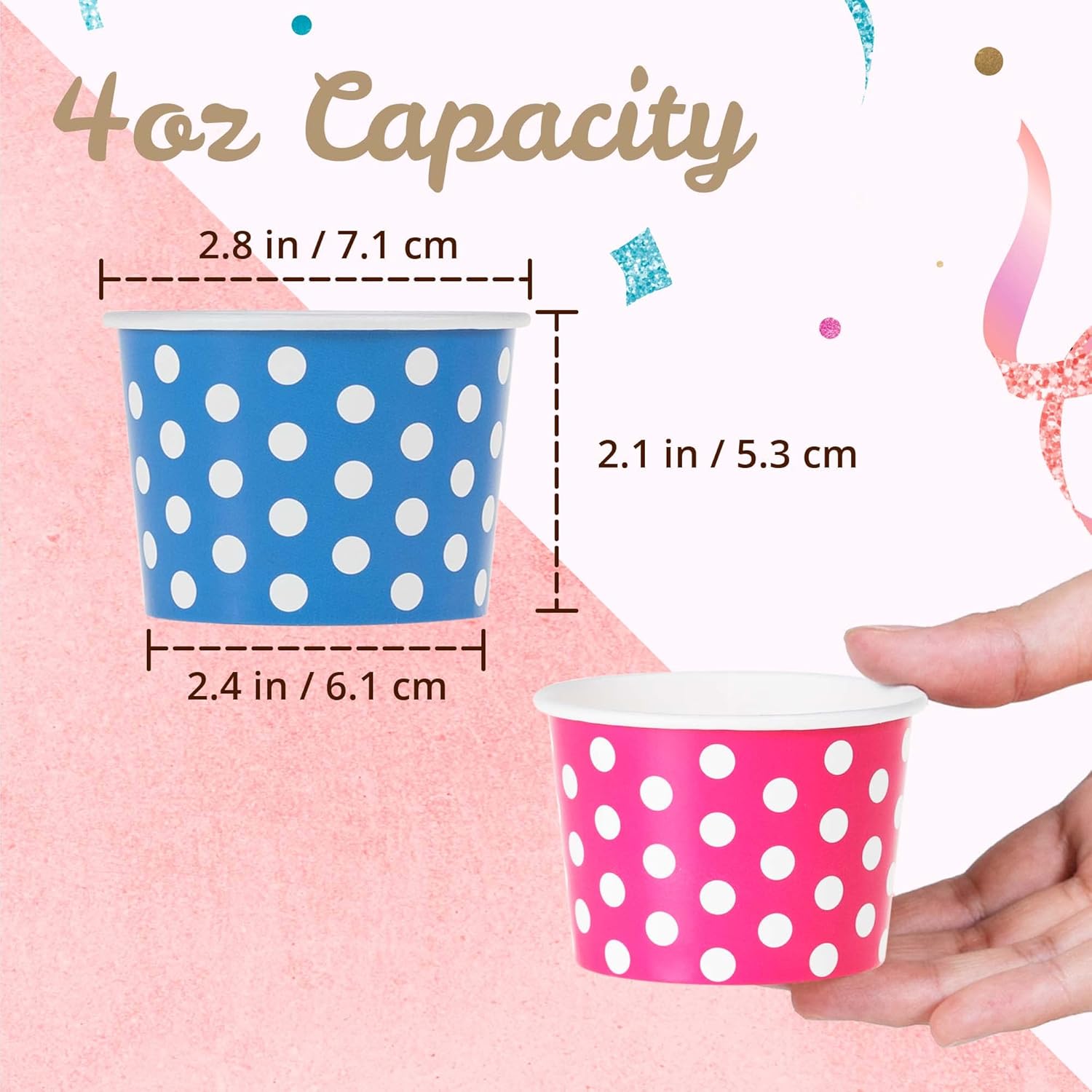 Easy to Clean: these disposable ice cream cups are hassle-free cleanup, you can discard them directly after using in the party without the hassle of washing dishes; The disposable design can save you a lot of time, ensuring you can focus on gathering moments with others Durable and Reliable: cups are crafted from quality paper, lightweight and sturdy, resistant to leaking and tearing; They can hold ice cream sundaes, froyo, gelato, and other frozen treats, also serve hot items like chili, macaroni, and soup Versatile for Various Events: these dessert bowls are suitable for a wide range of occasions; Whether it's Easter party, baby shower, wedding reception, birthday, or family gathering, they fit seamlessly into any theme; Their classic design complements various decorative styles, making them an essential for your party supplies