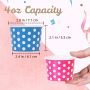 Optimally Sized for The Occasion: The cups have an 5.5 ounce capacity. Suitable for a healthy serving of your choice of desserts or snacks. Convenient and Eco-Friendly: Choose paper over single-use plastic cups so once the paper cups are disposed of they will naturally degrade within a reasonable amount of time unlike plastic.