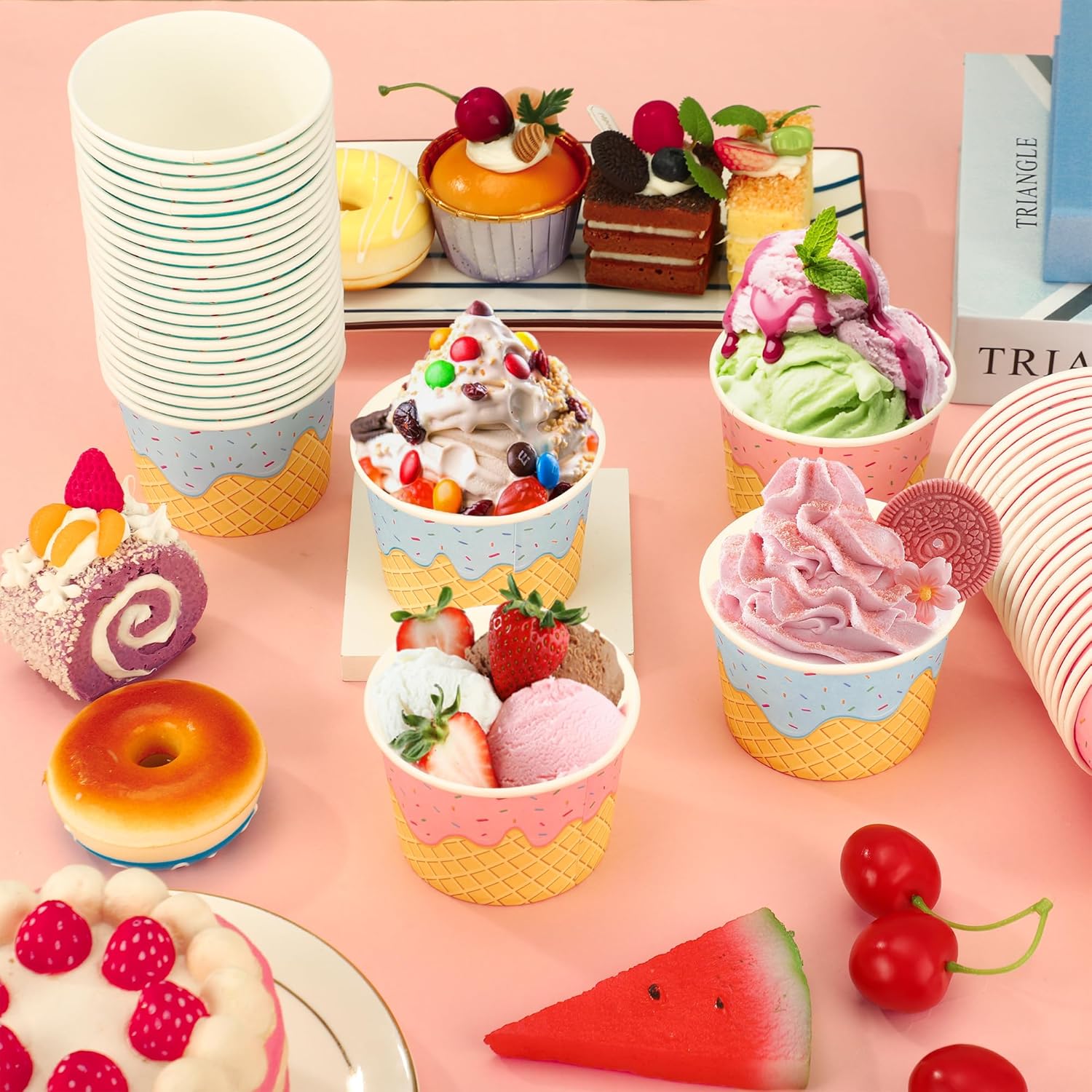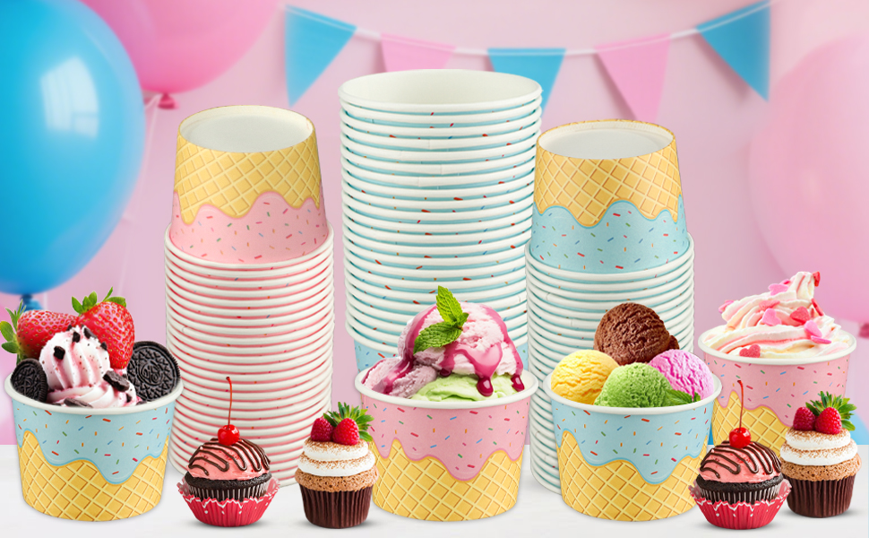 Easy to Clean: these disposable ice cream cups are hassle-free cleanup, you can discard them directly after using in the party without the hassle of washing dishes; The disposable design can save you a lot of time, ensuring you can focus on gathering moments with others Durable and Reliable: cups are crafted from quality paper, lightweight and sturdy, resistant to leaking and tearing; They can hold ice cream sundaes, froyo, gelato, and other frozen treats, also serve hot items like chili, macaroni, and soup Versatile for Various Events: these dessert bowls are suitable for a wide range of occasions; Whether it's Easter party, baby shower, wedding reception, birthday, or family gathering, they fit seamlessly into any theme; Their classic design complements various decorative styles, making them an essential for your party supplies