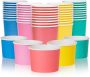 Elevate Your Dessert Presentation - Our stylish Disposable Dessert Bowls with their exuberant color palette not only enhance the visual appeal of your sweets but are also crafted for strength and durability, making them the ideal choice for both private delights and social gatherings Safe & Practical - Made from quality durable cardboard, our disposable ice cream bowls are designed for easy, hassle-free clean-up, saving time and water; serving your treats in our paper cups means you're making a responsible choice while offering your guests or family a joyful time Delight in Style & Convenience - Each Paper Ice Cream Bowl is 8 ounces in capacity, crafted from premium cardboard, featuring playful ice cream and waffle patterns in vivacious purples, pinks, greens, and blues to make your desserts look even more tempting; Greatly sized (3.5-inch/9 cm top diameter, 3-inch/7.5 cm bottom diameter, 2.4-inch/6.2 cm height) for any occasion Versatile Treat Solution - Our Paper Ice Cream Containers are the ideal partners for a range of your favorite delights from ice cream, frozen yogurt, soups, and cakes to cookies, popcorn, snacks, desserts, and condiments; they provide the flexibility and convenience you need whether at home or during a party feast