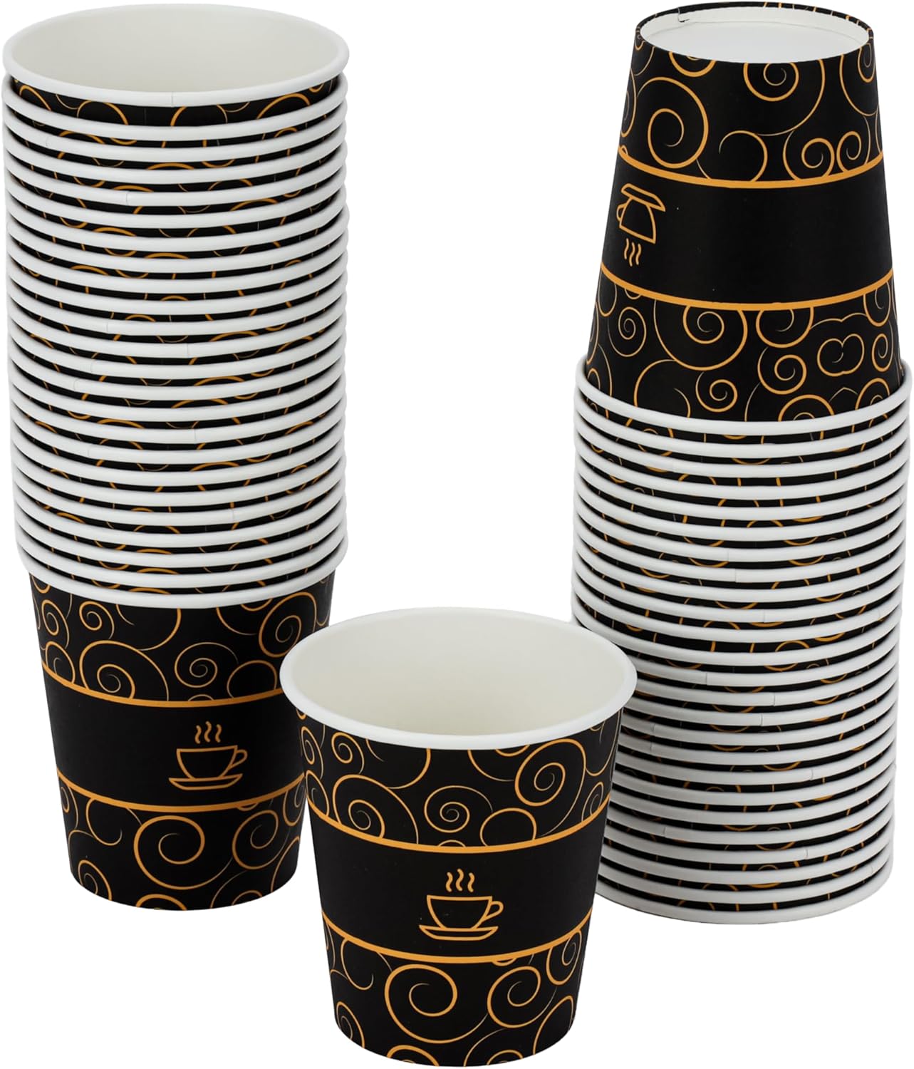 【Strong Double Wall Coffee Cups】Double wall paper cups are stronger than the single layered ones keep your drinks at the perfect temperature, safely enjoy any hot/cold beverage without cups getting soggy. 【Environment friendly and Recyclable】Constructed with food grade premium paper, these disposable coffee cups can be easily recycled after use, making you to be nature-friendly. 【Secure Lids】The lid fit securely to the cup without leaking, no spills when grab and go. 【READY TO GO】These paper cups are microwave safe, perfect to take your coffee,tea,or favorite beverage to-go, the best choice for everyday use,party, birthday,wedding,office function or any special event.