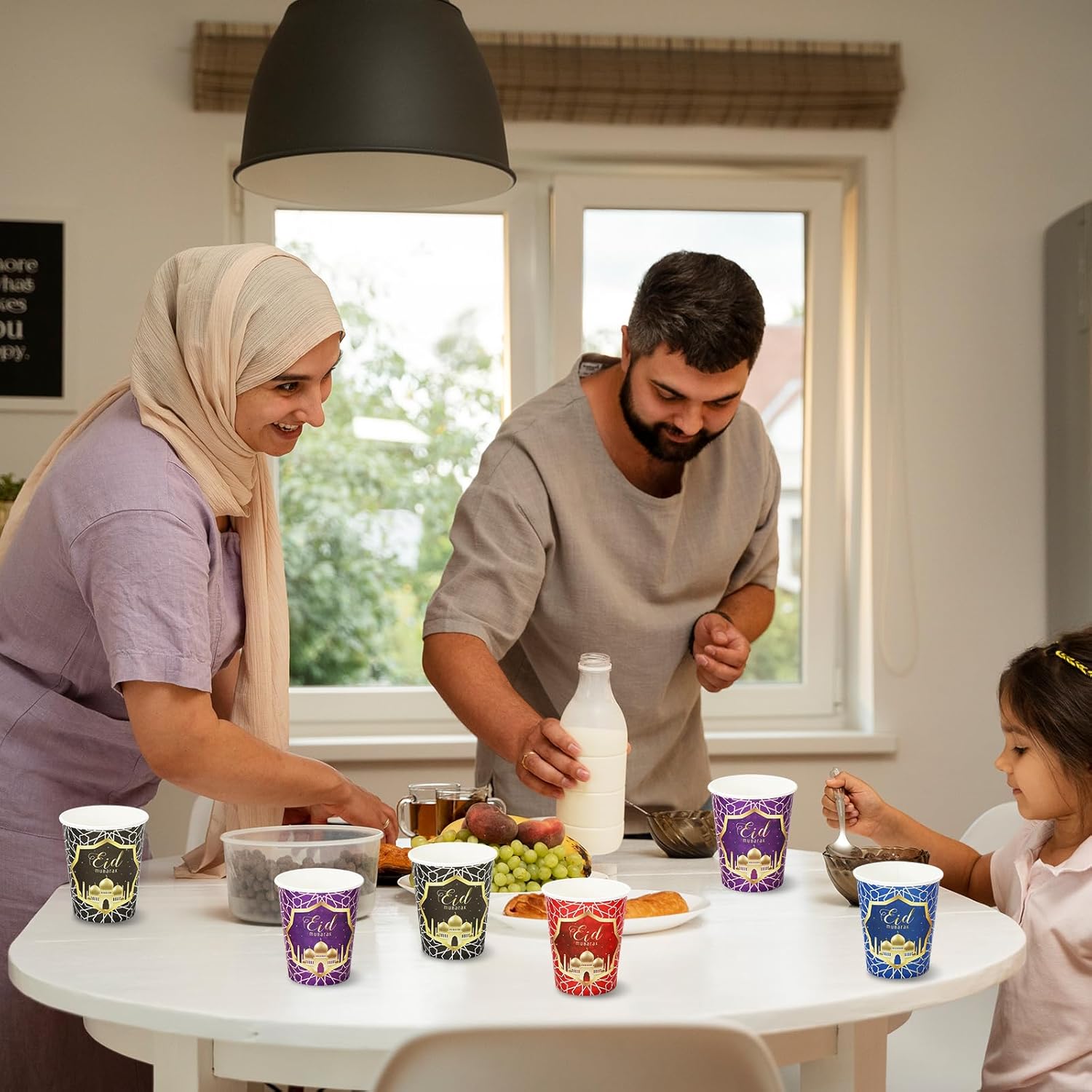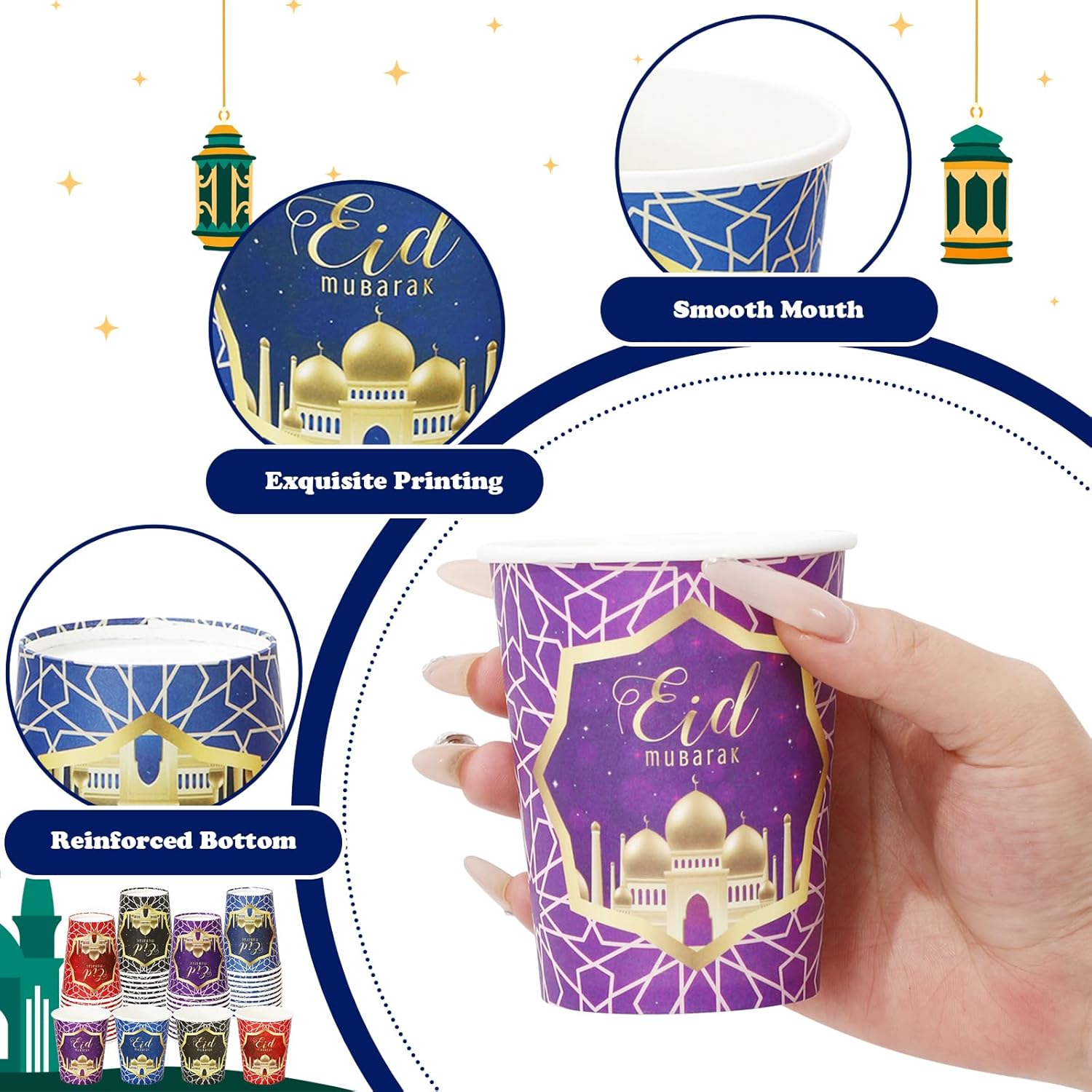 Festival Design: The paper cups are designed in 4 colors, pattered with mosque, words and other elements, full of holy feelings, adding a touch of class to Ramada party Enough Capacity: Each paper cup is 9 oz, proper capacity for people to use, and proper for people to hold in hands. Please check the size before ordering Good Quality: Made of thick paper material, sturdy and reliable, and they can hold both hot and cold waters and beverages, very useful Versatile Usages: Ideal for Islamic holiday, Eid Mubarak and any other parties or celebration activities, add more charm to dining table, dessert table, buffet table and more