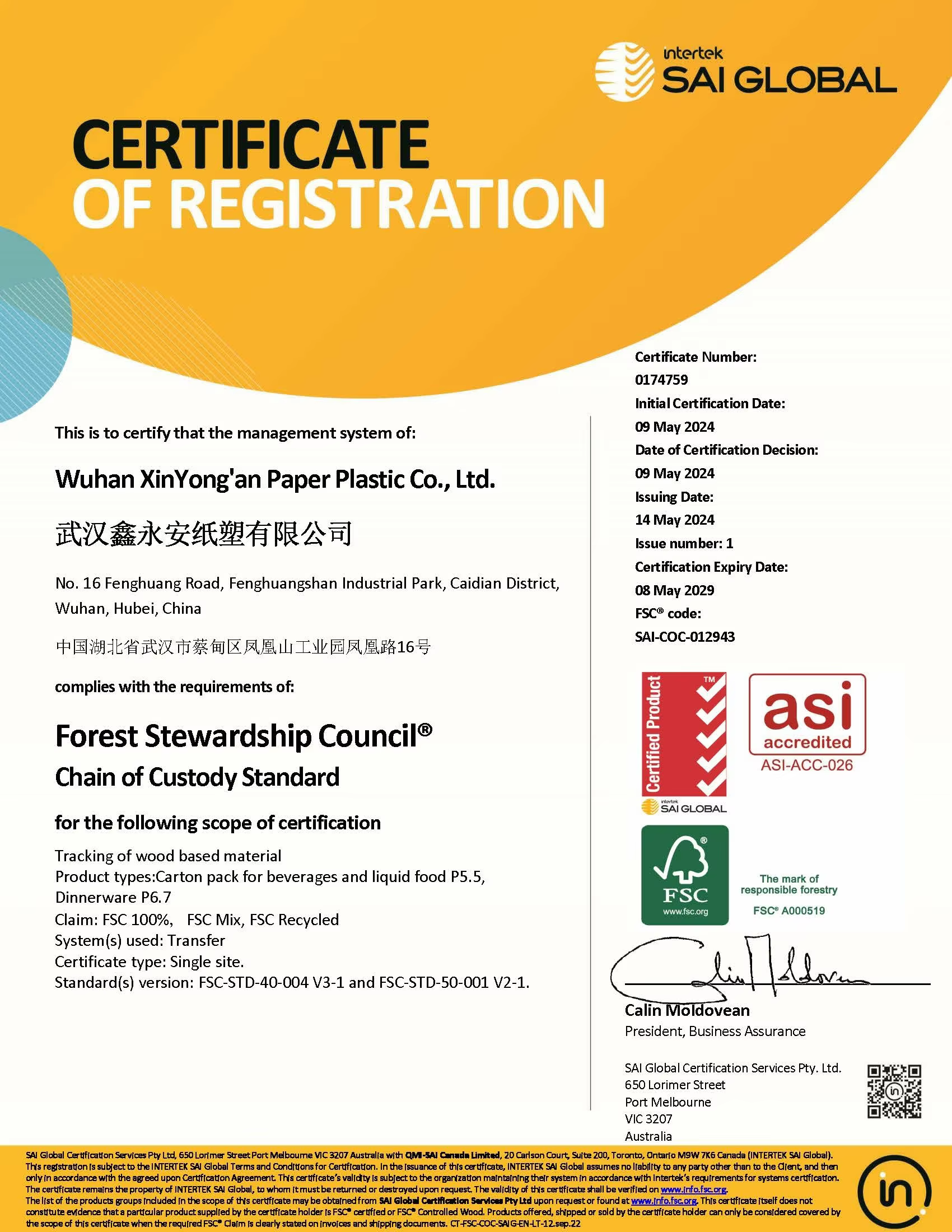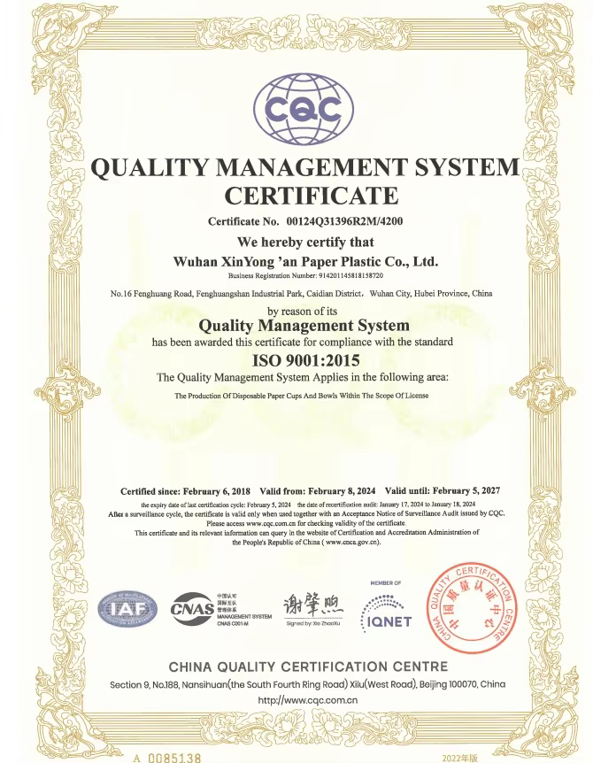 Wuhan XinYongAn Industry And Trade Co., Ltd, Was established in 2000. Specialized in producing and selling disposablefood packing for over 25 years. We are committed to providing customers with a competitive advantage of packaging containers and supply chain management solutions to create maximum value for customers. XYA products including Eco-packaging, 100% Bio-packaging,paper cups ,beverage cups,straws,meal boxes, saladcontainer,take away bags,napkins, sushi boxes, and so on. BPl certified food contact safe, lSO complied QC system assure ourstable quality control. A good food packaging can enhance the brand's addedvalue for customers products, good services can reduce customers' worries and devote more time to the company's further development.