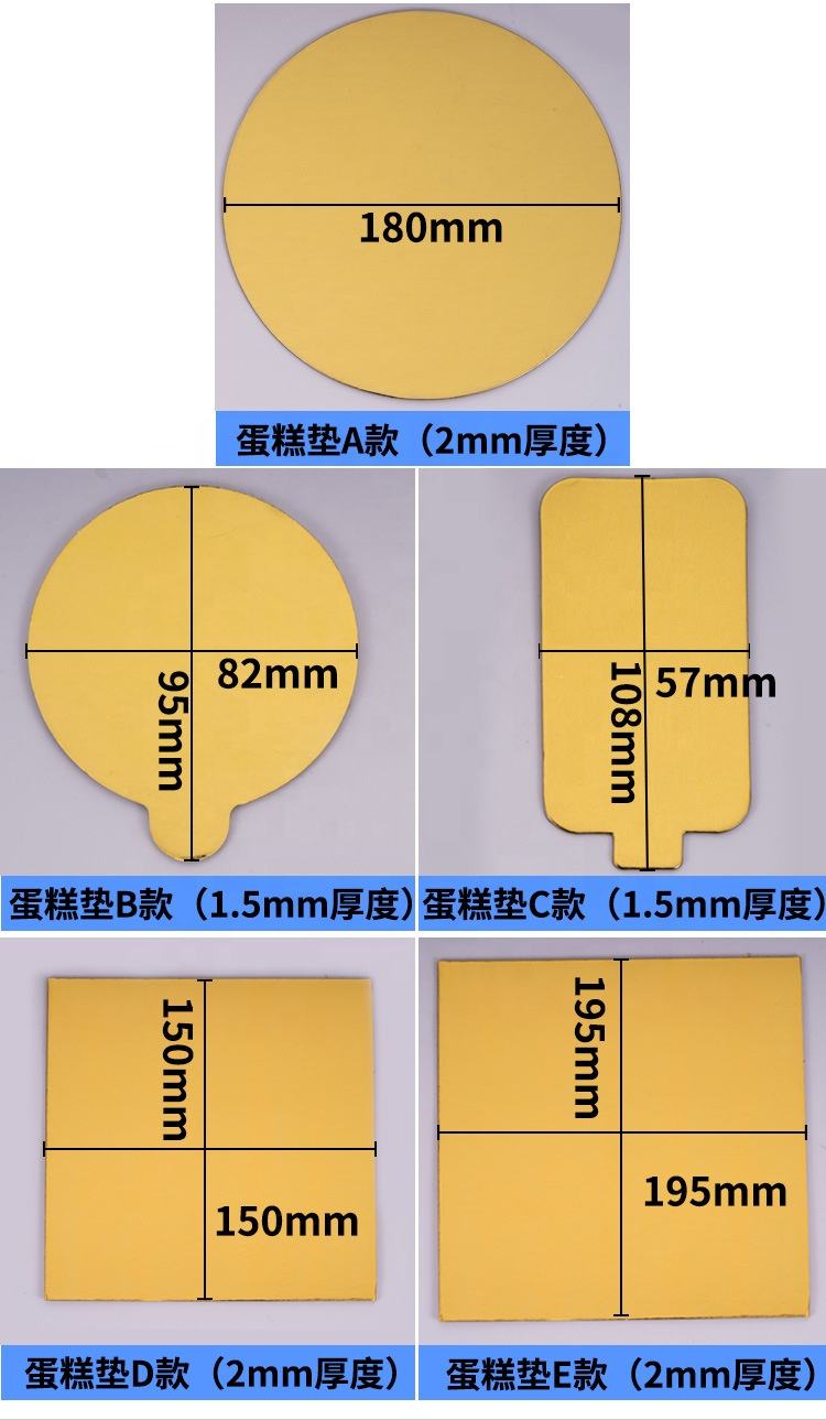 XYAPACK Free Sample Cake Paper Tray Round Rectangular Small Cake Plate Silver Card Pad Dessert Mousse Gold Paper Card Bottom Tray