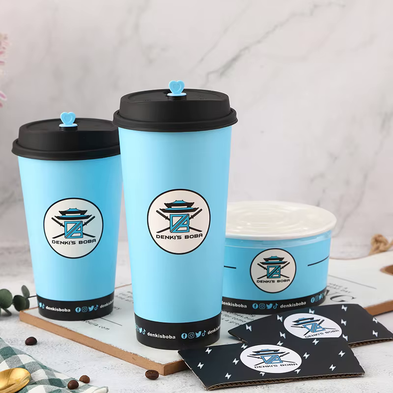 16 oz Eco-Friendly Disposable Paper Cup with Lid for Cold Drinks Tea for Craft and Pack Use Custom Logo Available