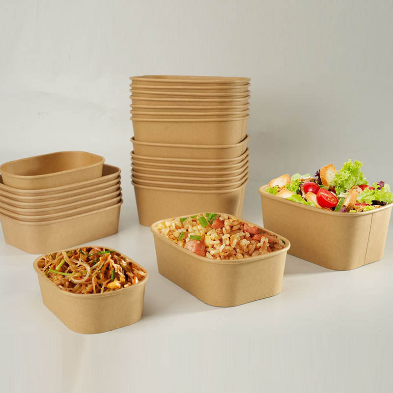 XYAPACK 500ml 750ml 1000ml 950ml 1250ml 1450ml Kraft Rectangle Salad Paper Bowl With Paper Lids