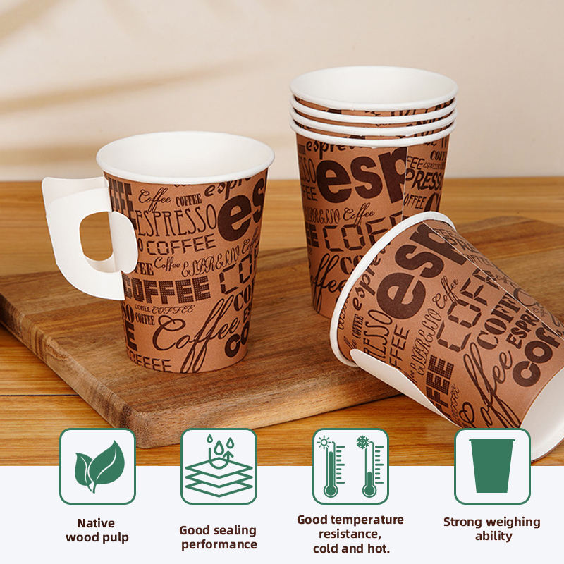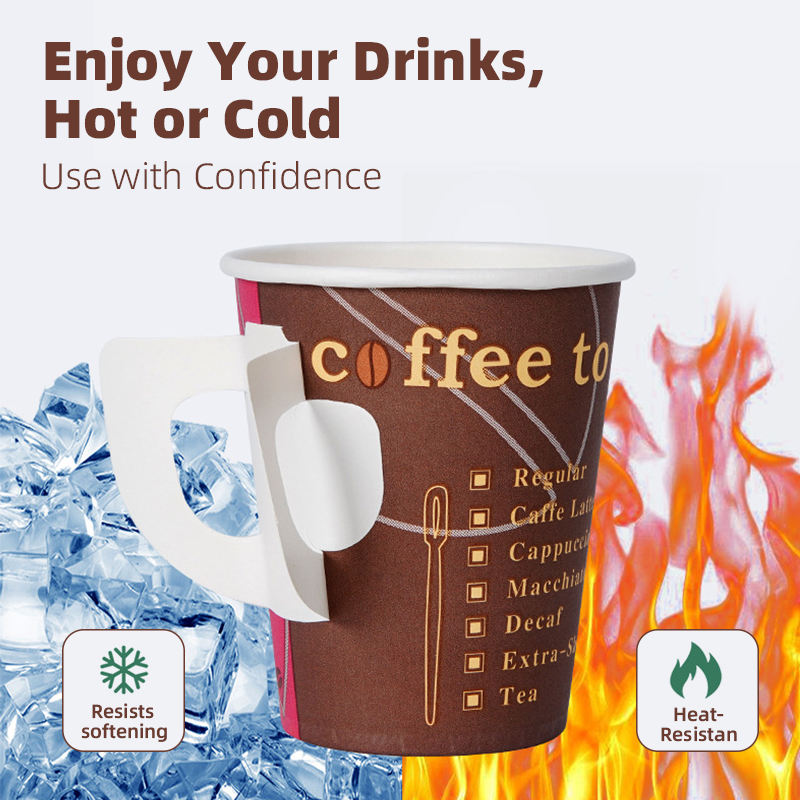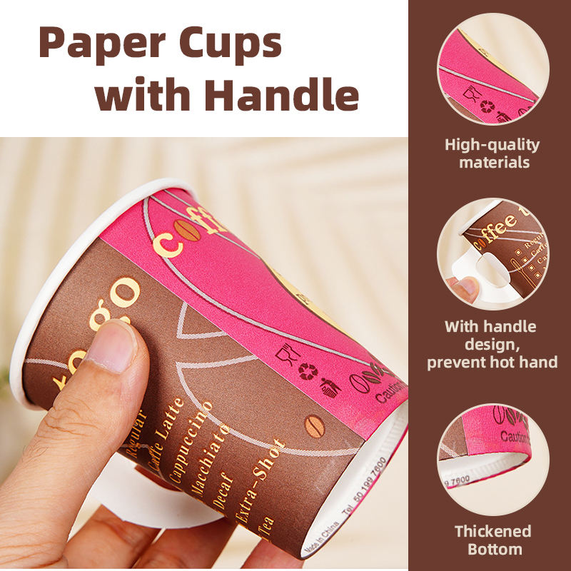XYAPACK 4oz Custom Logo Disposable Hot Coffee Paper Cups with Handle 6oz 7oz 8oz Paper Cups for Hot Tea