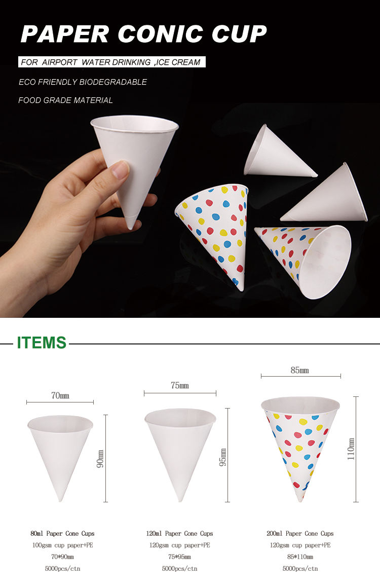 XYAPACK Disposable Rolled Paper Cone Cup Airport Water Cup ,cheap Custom Single Wall Disposable Ice Cream Cone Paper Cups