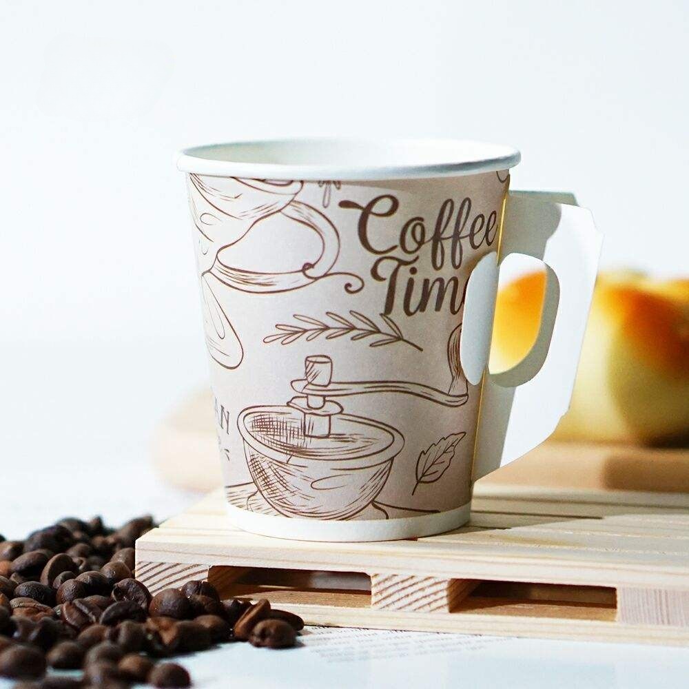 XYAPACK 4oz Custom Logo Disposable Hot Coffee Paper Cups with Handle 6oz 7oz 8oz Paper Cups for Hot Tea