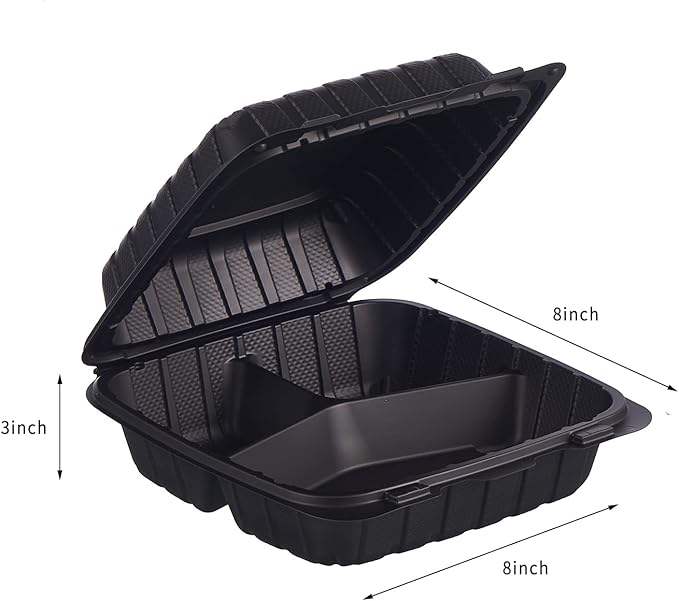 XYAPACK Free Sample 8x8-Inch 3-Compartment Disposable to Go Box Containers Plastic Clamshell Takeout Food Trays