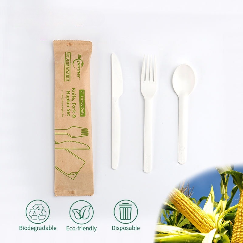 XYAPACK Free Sample Custom Biodegradable PP Dispos Fork Spoon Knives Cornstarch Plastic Utensils Restaurant to Go Cutlery Set Disposable with Napkin