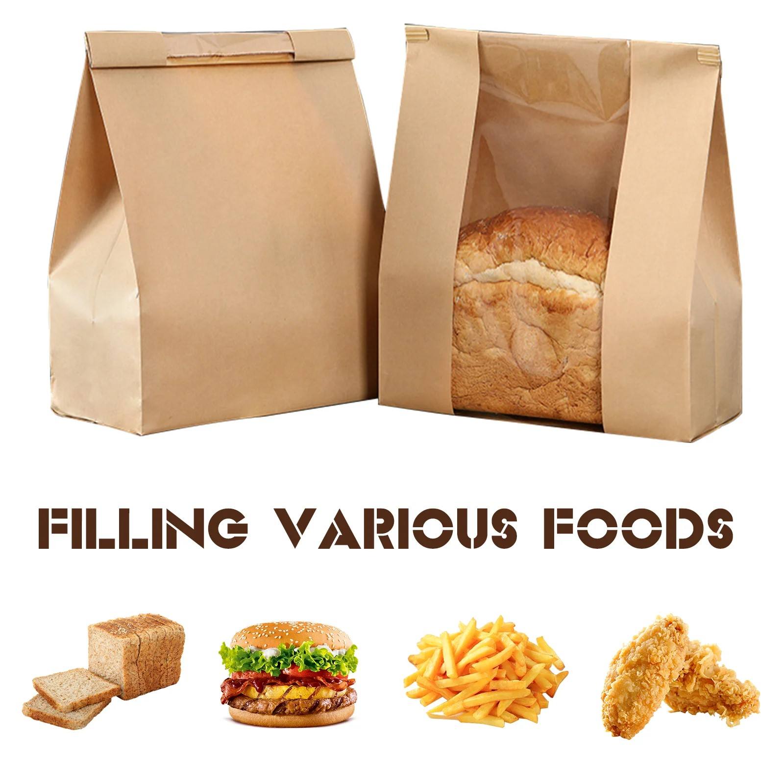 XYAPACK Free Sample Kraft Paper Bag Loaf Party Supplies Bread Storage Toast Takeaway Bakery Avoid Oil Lunch Baking Clear Food Packaging Bag