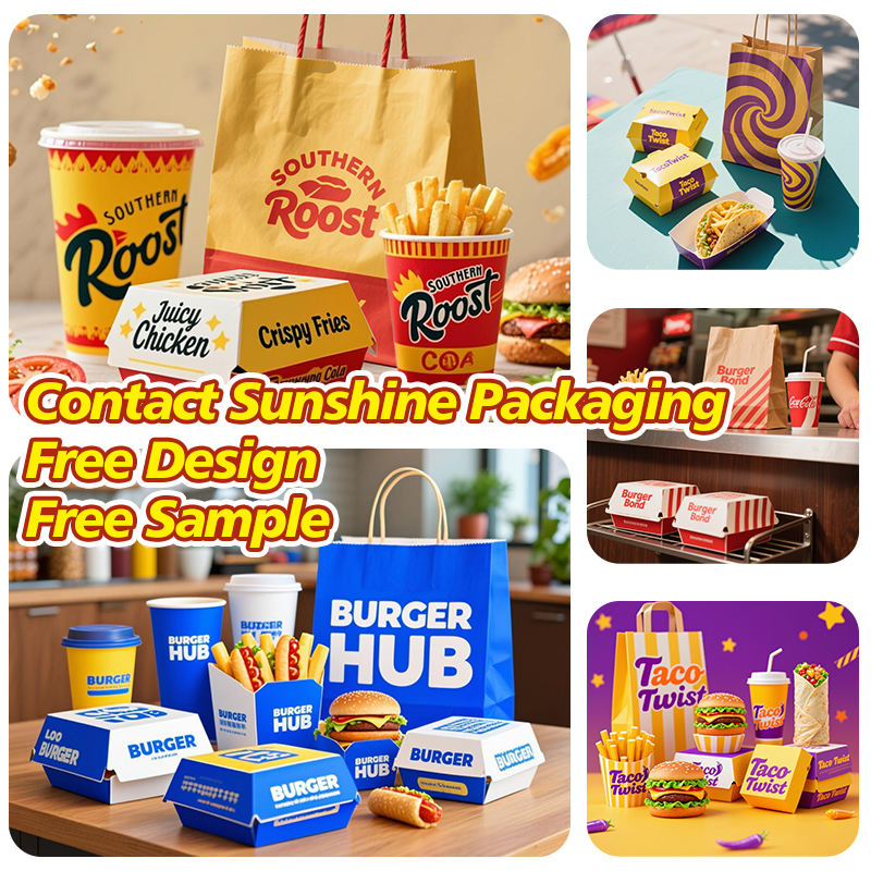 XYAPACK Free Sample Custom Logo Sandwich Popcorn Hot Dog Fried Chicken Lunch Box Hamburger Burger Box Printing Fast Food Branded Packaging