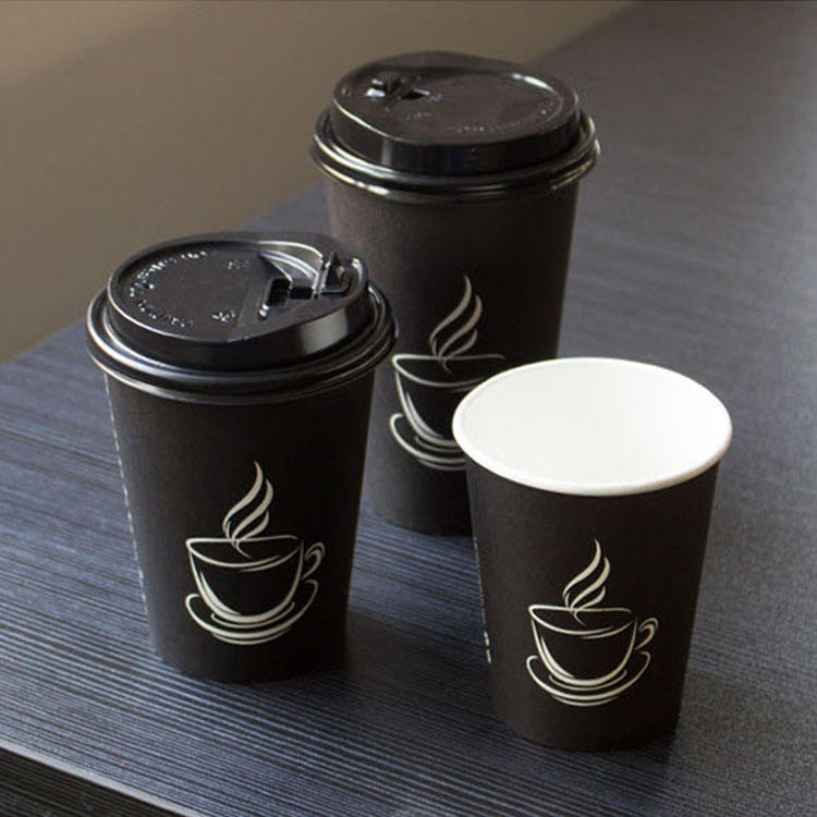 XYAPACK Free Sample Eco Friendly 8oz 12oz PLA Cup Disposable Degradable Black Single Double Wall Cup Takeaway Ethiopia Craft Paper Cups