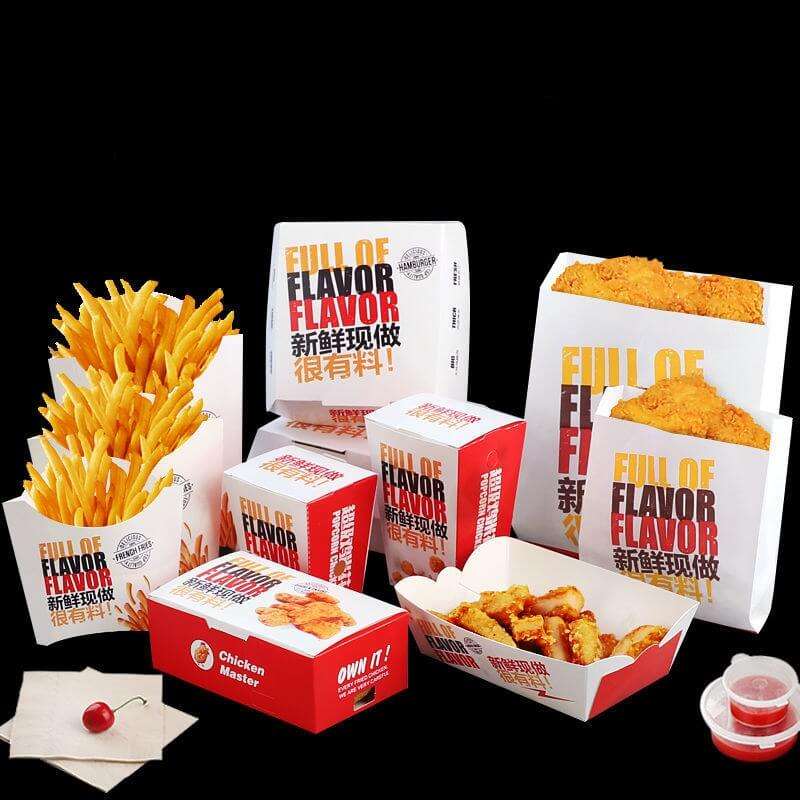 XYAPACK Free Sample Custom for Hamburger French Fries Fried Wing Paper Boxes togo Snacks Fast Food Packaging Container Takeaway Burger Chicken Box