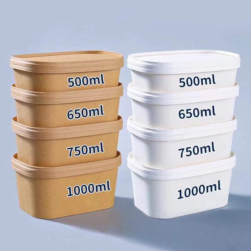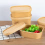 XYAPACK Free Sample Kraft Paper Lunch Box Disposable square Rounded Take Away Box 750ml Fast Food Packing Salad Box Commercial Paper Bowl