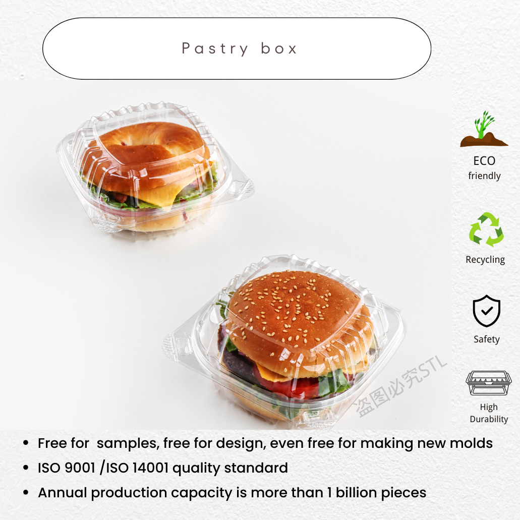 XYAPACK Free Sample Manufacturer Supply 6"8"9"Plastic Clamshell Dessert Boxes with Lids to Go Box for Hamburger Sandwiches Container