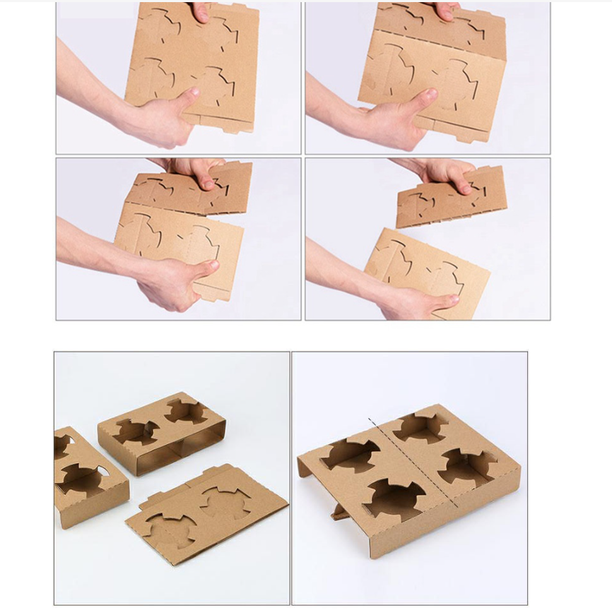 XYAPACK Free Sample Paper Cup Holders for Takeaway Beverages, Disposable Paper Cup Holders, Coffee and Milk Tea Double Four Cup Holder Tray Carrier