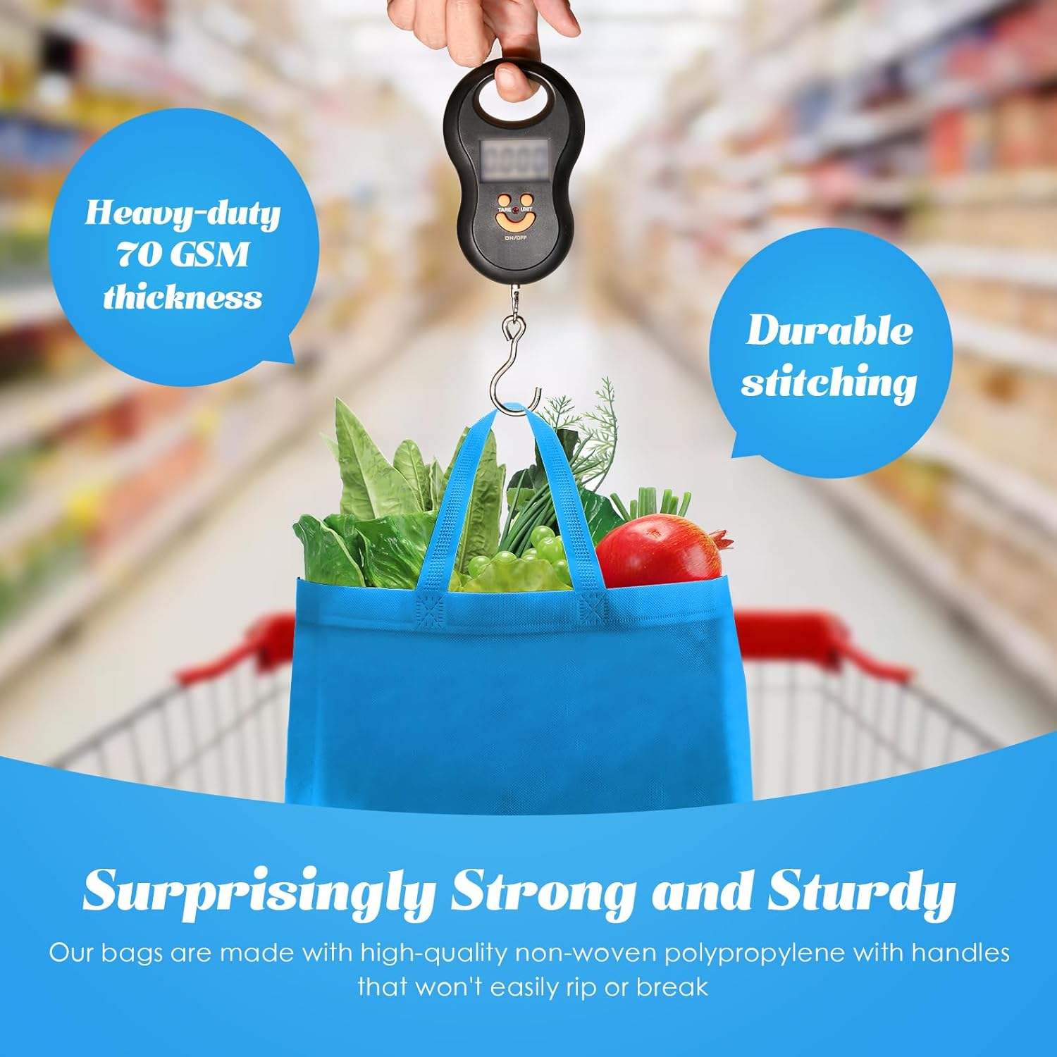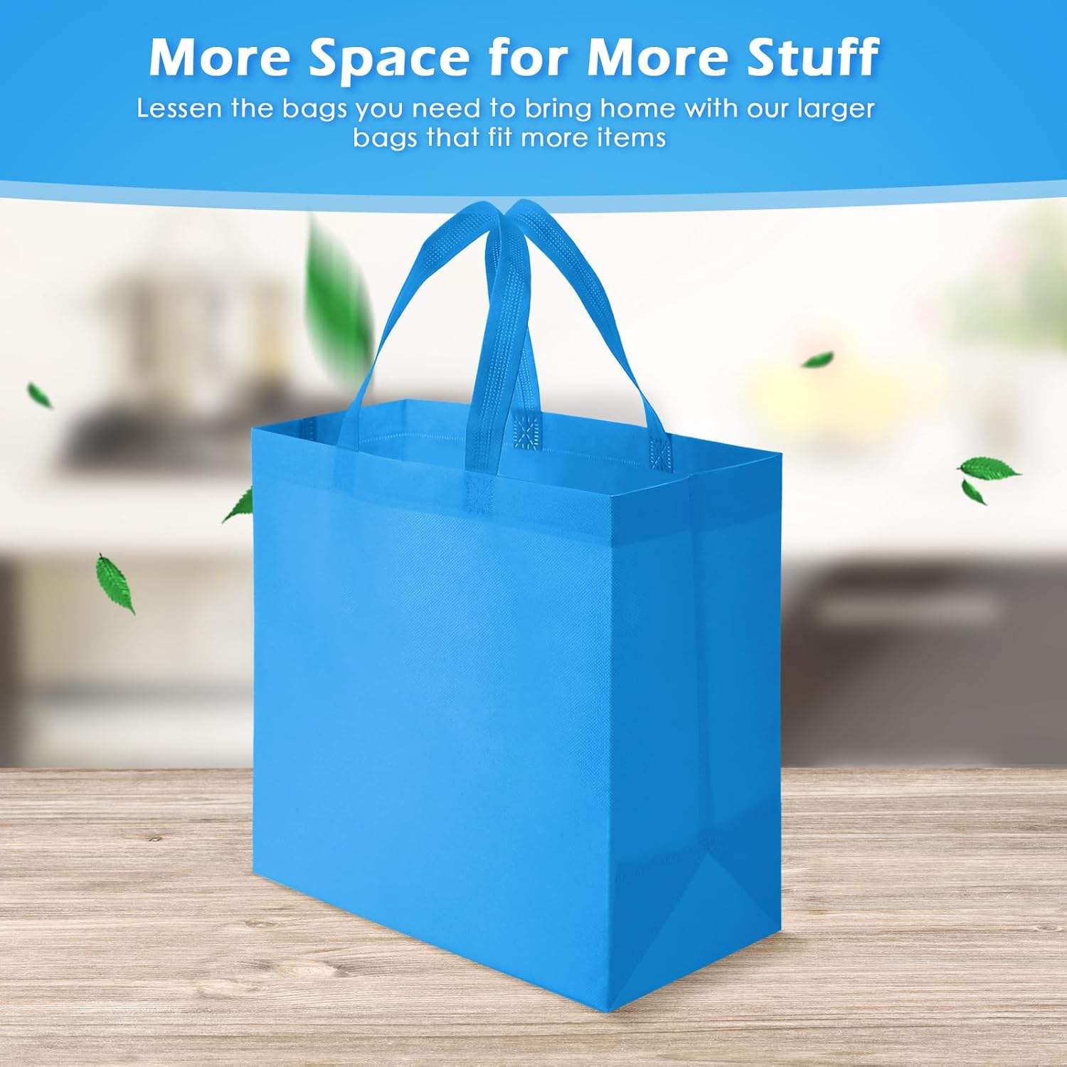 XYAPACK Free Sample Reginary 50-Piece Sky Blue Reusable Totes Bags Bulk Non-Woven Grocery Handbags with Foldable Handles for Boutiques & Gifts