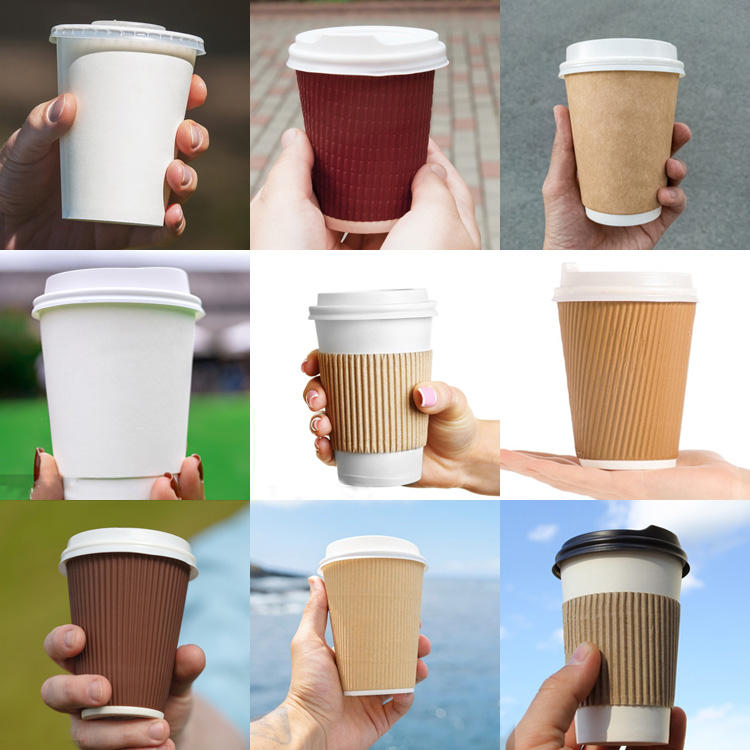XYAPACK Free Sample Custom Printed Logo Disposable 7oz-14oz Double Ripple Wall Hot Stamping Lid Paper Cups for Wine Milk Tea Coffee