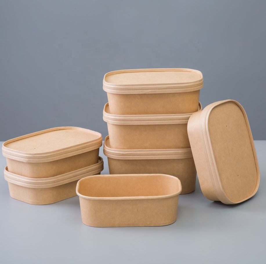 XYAPACK 500ml 750ml 1000ml 950ml 1250ml 1450ml Kraft Rectangle Salad Paper Bowl With Paper Lids
