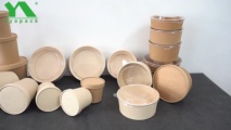 XYAPACK Recyclable Food Grade Greaseproof Kraft Paper Salad Soup Cup Bowls With Lids for Take Away Package